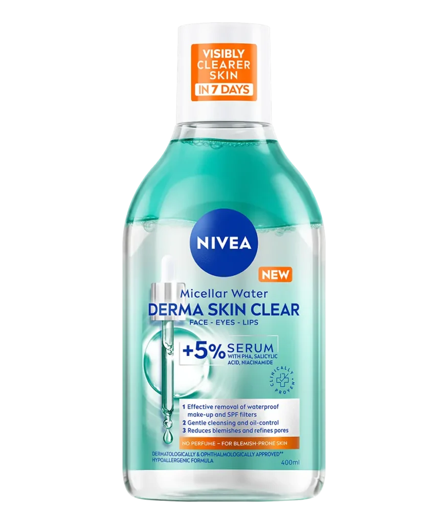 Dla skóry skłonnej do niedoskonałości NIVEA stworzyła formułę z 5% serum z PHA, kwasem salicylowym i niacynamidem. Kilka lekkich ruchów wystarcza, aby usunąć makijaż i filtry SPF, jednocześnie wygładzając pory, redukując niedoskonałości i regulując wydzielanie sebum.