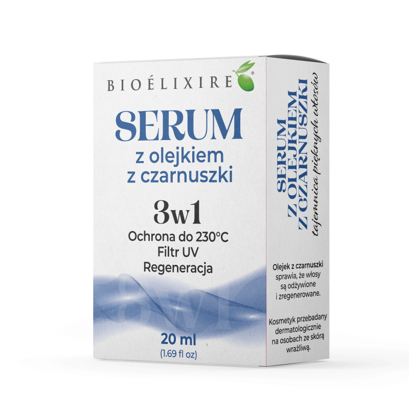 Serum Bioelixire to kultowy kosmetyk, którego z pewnością nie trzeba przedstawiać włosomaniaczkom. Jego silnie skoncentrowana, olejowa formuła powstała na bazie lekkich silikonów, olejku z czarnuszki i malachitu. Nie tylko intensywnie odżywia, regeneruje i wzmacnia włosy, ale dodatkowo zabezpiecza je przed utratą wilgoci, promieniami UV oraz wysokimi temperaturami stylizacji. Ponadto serum z czarnuszką wygładza, zmiękcza, nabłyszcza, ułatwia rozczesywanie i nadaje włosom jedwabisty wygląd bez ich niepotrzebnego obciążania lub sklejania.
