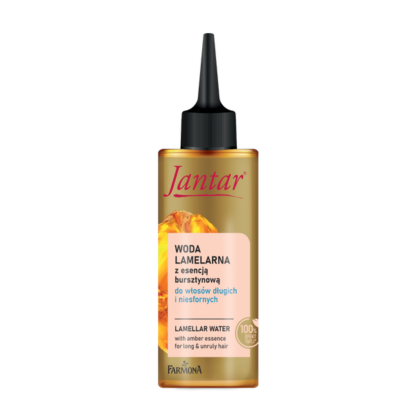 Woda lamelarna Jantar została stworzona z myślą o włosach długich i niesfornych, które potrzebują ujarzmienia, wygładzenia i zmiękczenia. Zapewnia dogłębną pielęgnację bez efektu obciążenia. Zawarte w niej proteiny pszenicy, estry jojoba oraz esencja bursztynowa, działają jak opatrunek dla włosów, które w wyniku czynników zewnętrznych lub zabiegów fryzjerskich utraciły blask i miękkość. Woda lamelarna Jantar intensywnie nawilża, wzmacnia, odżywia i kondycjonuje kosmyki, jednocześnie nadając im blask oraz zwiększając podatność na stylizację.