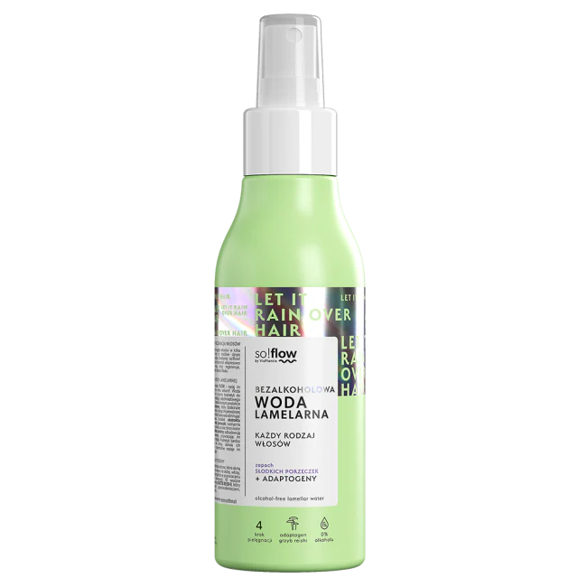 Woda lamelarna So!Flow to prawdziwa bomba odżywcza, której podstawę stanowią składniki pochodzenia roślinnego. W formule znalazły się m.in. proteiny pszenicy, kukurydzy i soi, inulina, kwas mlekowy oraz ekstrakty z grzybów reishi, jeżyny, czarnej porzeczki i orzecha włoskiego. Dzięki temu kosmetyk nie tylko zapewnia silne odżywienie, ale działa też nawilżająco i przeciwutleniająco, co wpływa pozytywnie na kondycję włosów oraz wspiera ich odpornośc na niesprzyjające czynniki zewnętrzne. Lekka, wodnista konsystencja wody lamelarnej pozwala uzyskać efekt zdrowych i pięknie odbijających światło włosów, przy jednoczesnym wsparciu ich struktury.